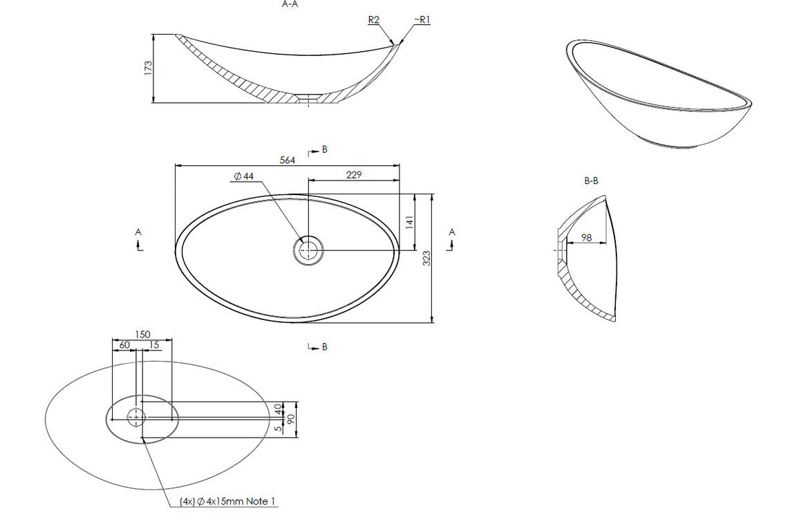 Alemi 564x323mm 0TH Resin Washbowl - White