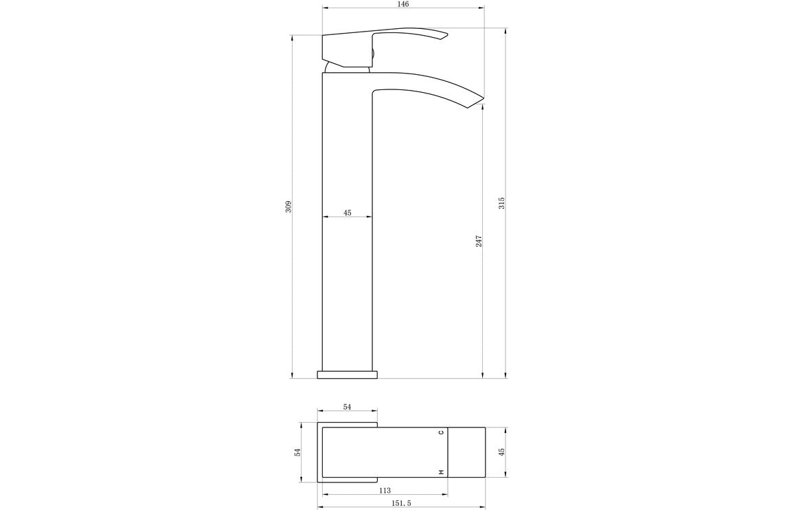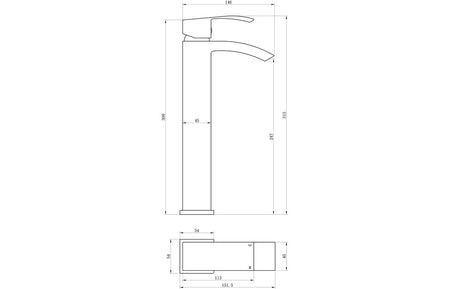 - Dimensions: H 315 x D 151.5 x W 54mm