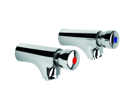 The Inta range of wall and basin mounted push taps is designed for use with our range of thermostatic mixing valves. With manual operation the tap functions for a period of time and then closes automatically. This operation makes the tap ideal for use in unsupervised areas such as sports changing rooms and washrooms. It is also perfect for use as a water economy device. The simple operation of the push tap enables users with limited mobility to use the facility.