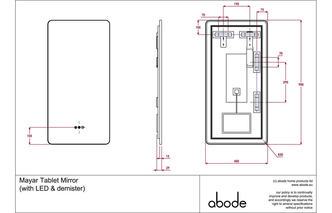 Abode Mayar 450x900mm Tablet LED Mirror - Matt Black
