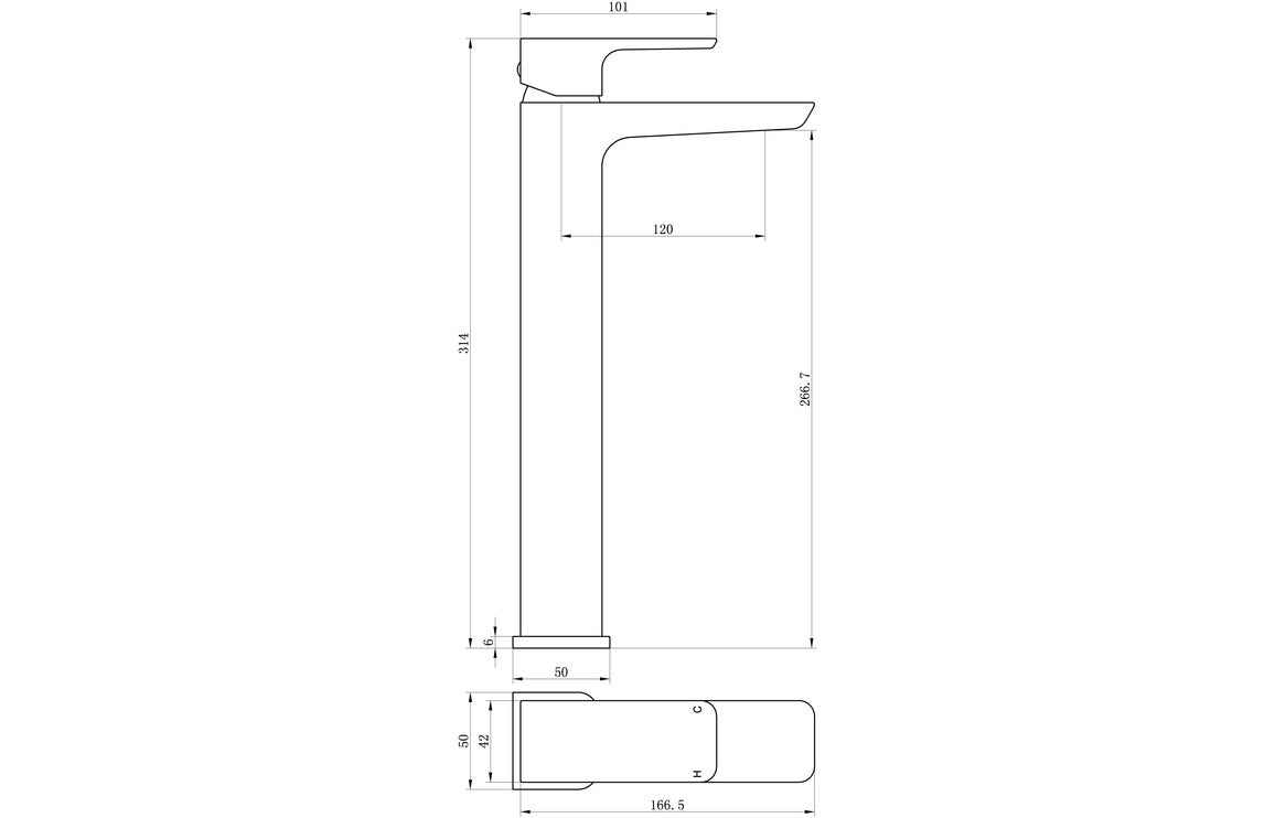 - Dimensions: H 314 x D 166.5 x W 42mm