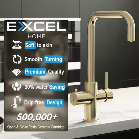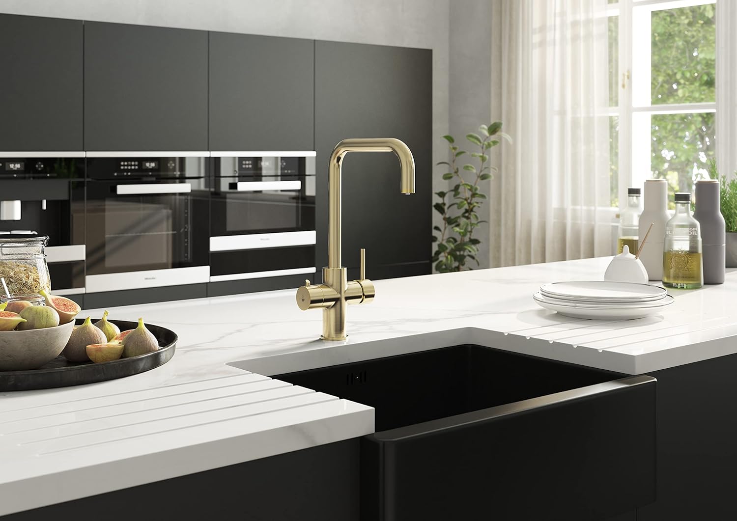 Boiling Water Tap, 2.4L Boiler Unit & Carbon Water Filter - 3 in 1 Instant Hot Water Tap (Brushed Brass)