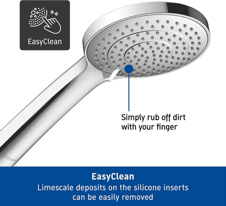 - 3 spray types: The hand shower has state-of-the-art technology that allows you to choose between three different spray types - Rain, Intense Rain or Soft Rain. The spray type can be changed by simply turning the spray disc.