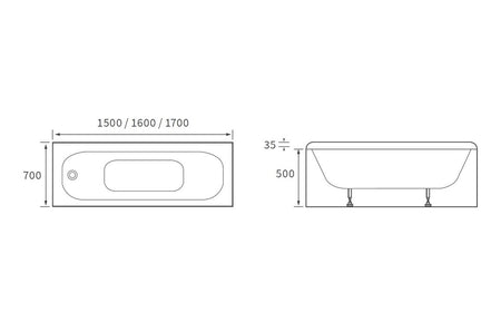 Eurowa Steel Single End 1700x700x500mm 2TH Bath w/Legs