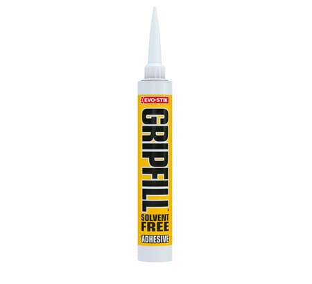 EVO-STIK GRIPFILL Solvent Free is a multi-purpose, high strength gap filling adhesive without the odour. It can be used on wood, plasterboard, ceramics and many other building materials, especially those that are sensitive to solvents.