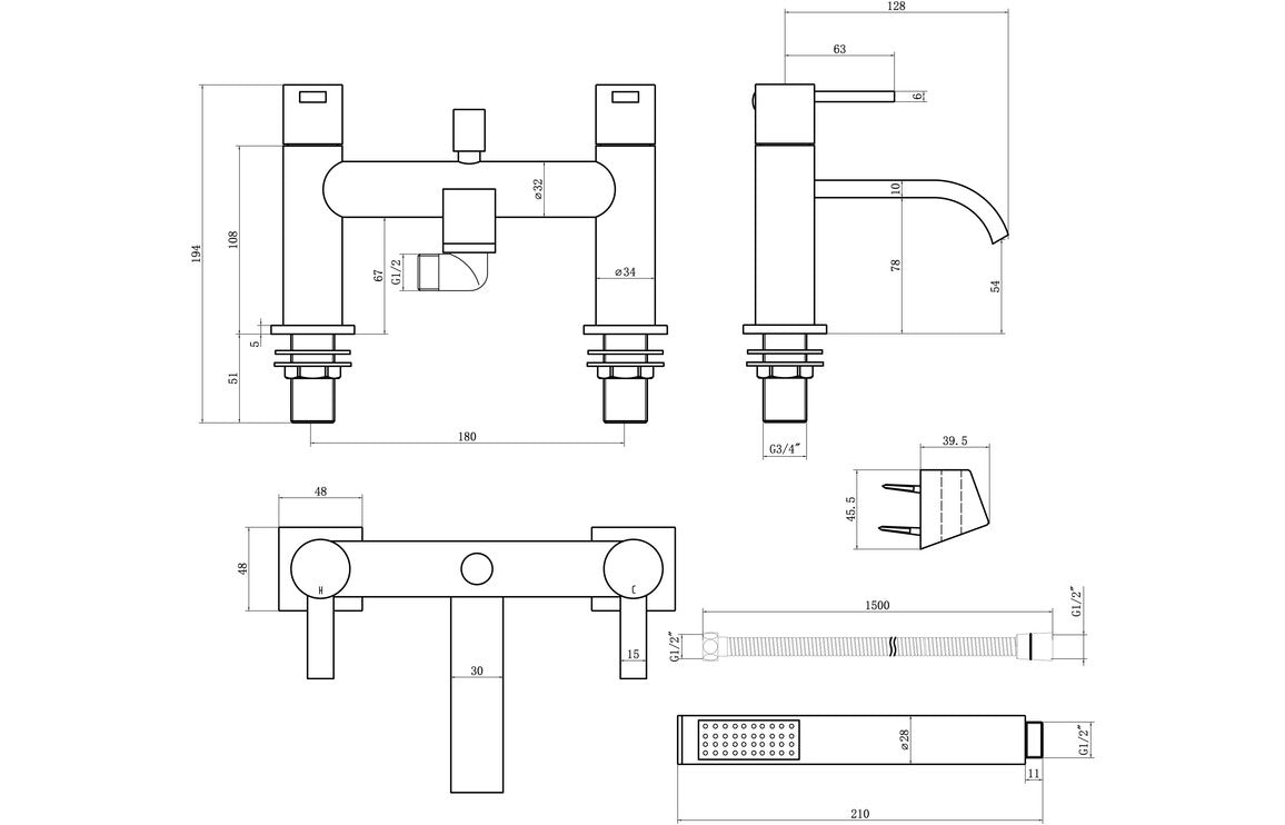 - Low Pressure Deck Mounted Chrome Bath Shower Mixer