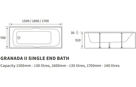 Granada II Single End Twin Grip Textured Base 8mm 1700x700x510mm 2TH Bath