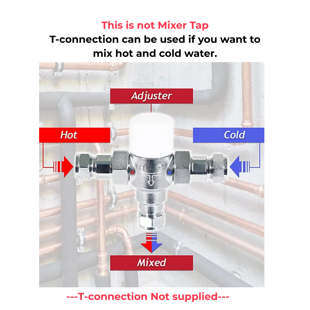 - Supplied with red and blue silicone rings for hot/cold identification; compatible with all pressure systems (min. 0.5 bar).
