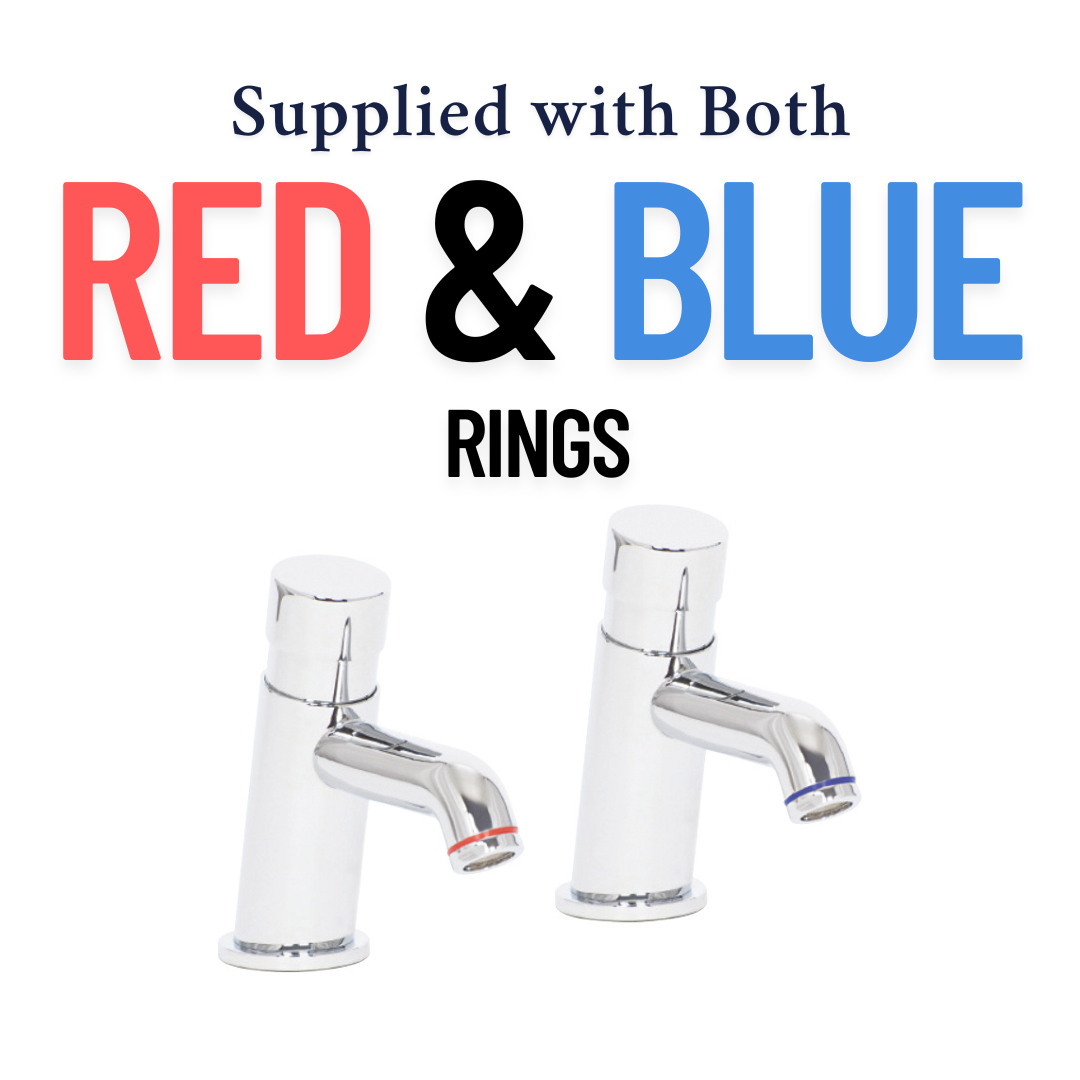 Bathrooms Push Button Non-Concussive Basin Tap Chrome – Self-Closing, Water Efficient, Adjustable Timer, Modern Brass Design, Red & Blue Silicone Rings (1)