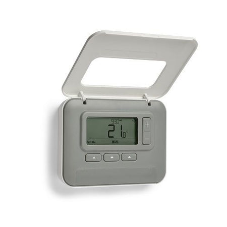 Enjoy a modern, fully-featured and programmable thermostat at an affordable price. The T3R is designed with convenience and simplicity in mind. For those who want the most flexible and easy way to control their comfort. Contains a battery-powered wireless thermostat (2xAA batteries included with a 2-year lifespan) and a wireless receiver box. Wireless thermostats can be placed anywhere in the home since no wires are needed between the thermostat and the boiler. Includes table stand.
