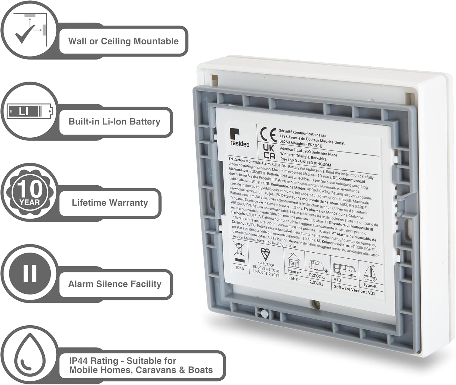 Honeywell R200C-1 CO Carbon Monoxide Detector 10 Year Battery CO2 Alarm R200 for Home Caravan Mobile Homes Boats