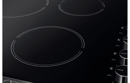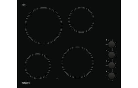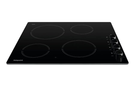 Built-in Hotpoint ceramic hob in sleek black for modern kitchens.