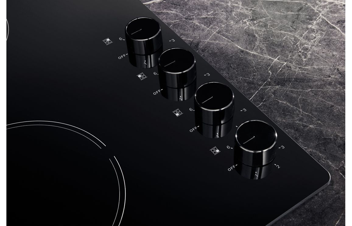 Hotpoint HR 620 R H 60cm Ceramic Hob – 4 Zone Built-In Black Integrated Kitchen Cooker, Side Rotary Dials, Residual Heat Indicator