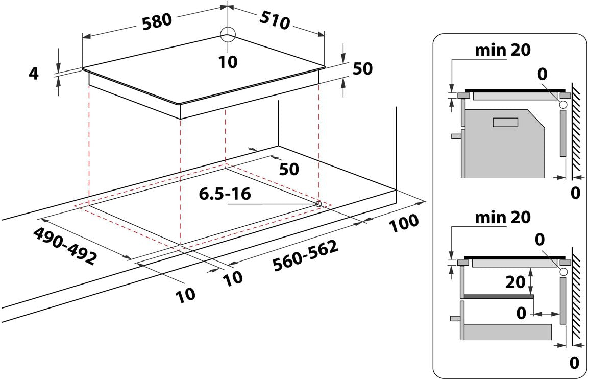 Dimensions: H50 x W580 x D510mm – fits standard kitchen cut-outs.