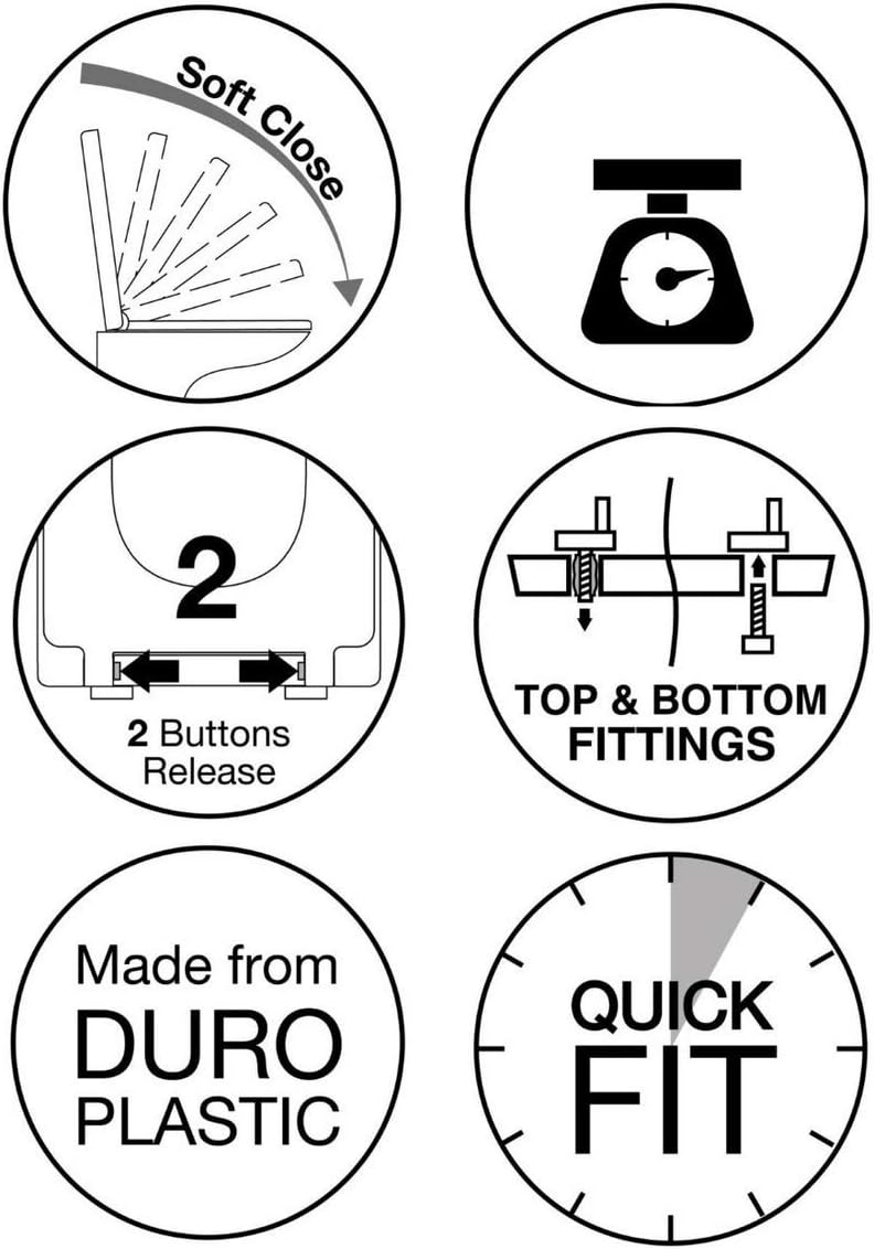 - Latest version of this modern round toilet seat with soft closing action on both the lid and the seat itself
