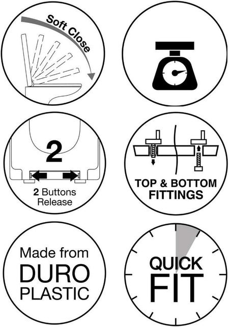 - Quick and simple installation. Seat comes complete with both bottom fittings for standard pans and top fix fittings for blind hole pans with no access underneath the pan.