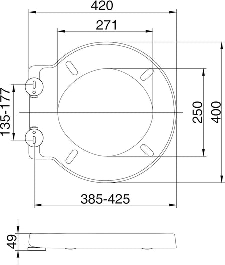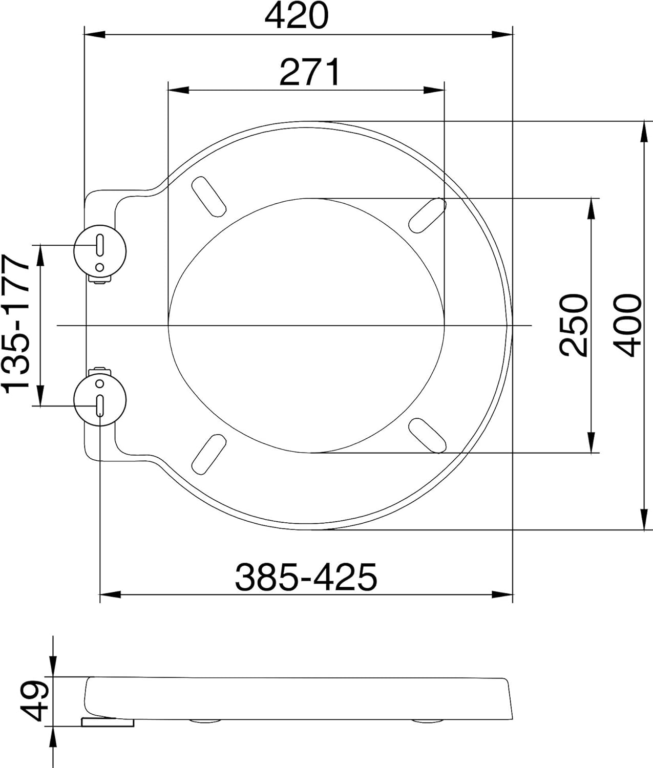- Adjustable Quick Release Hinges suitable for pans holes measuring 135-177mm centre to centre. Overall seat size: 400mm(width) x 420mm(length)