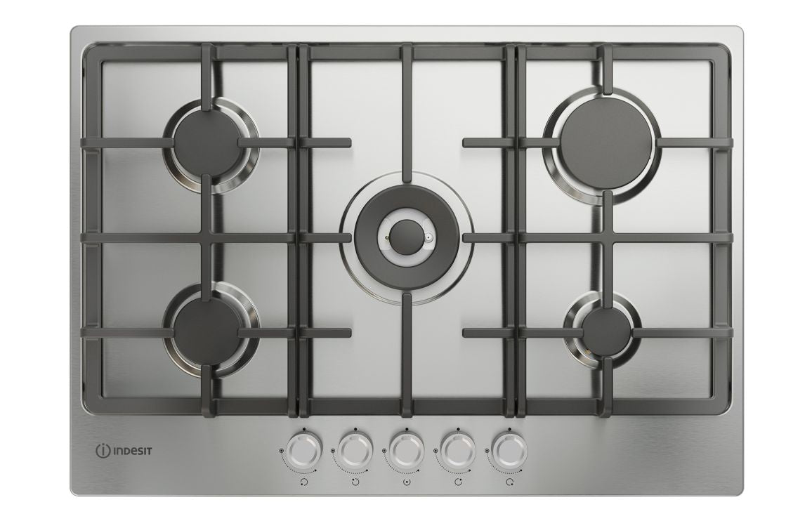Indesit 5-Zone Built-In Gas Hob – Stainless Steel, Cast Iron Pan Supports, Rotary Dial Control, THP 751 W/IX/I