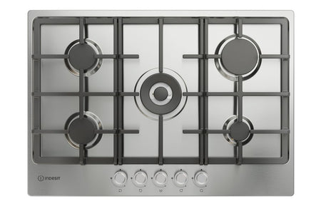 Upgrade your kitchen with the Indesit Built-In Gas Hob in sleek stainless steel. Featuring 5 powerful cooking zones and durable cast iron pan supports, this hob provides precision and reliability for all your cooking needs. The rotary dial controls make operation simple and intuitive, while the slim-profile design integrates seamlessly into your countertop.