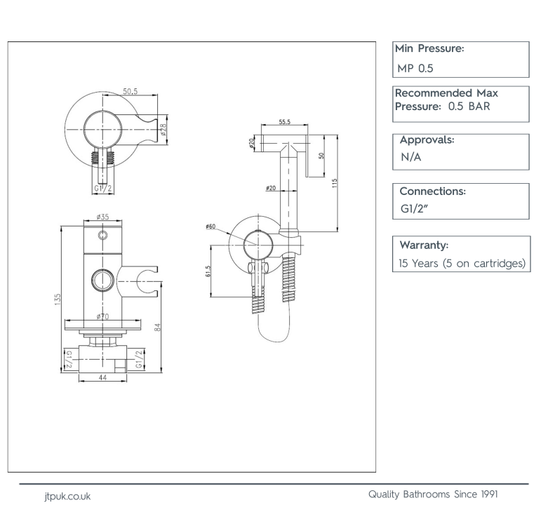 JTP Douche Kit & Bidet Spray VOS Douche Set for Cold and Hot Operation