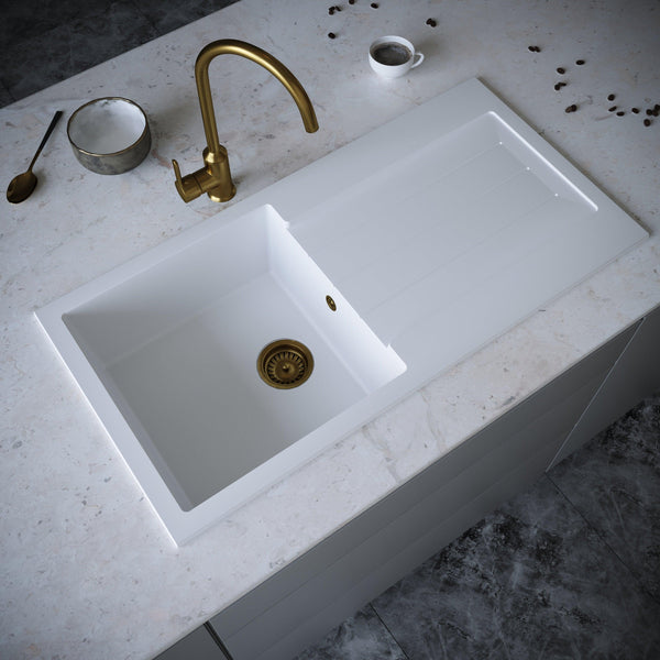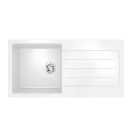Kitchen Sink Single Bowl With Drainer & Strainer Waste (Matt White)