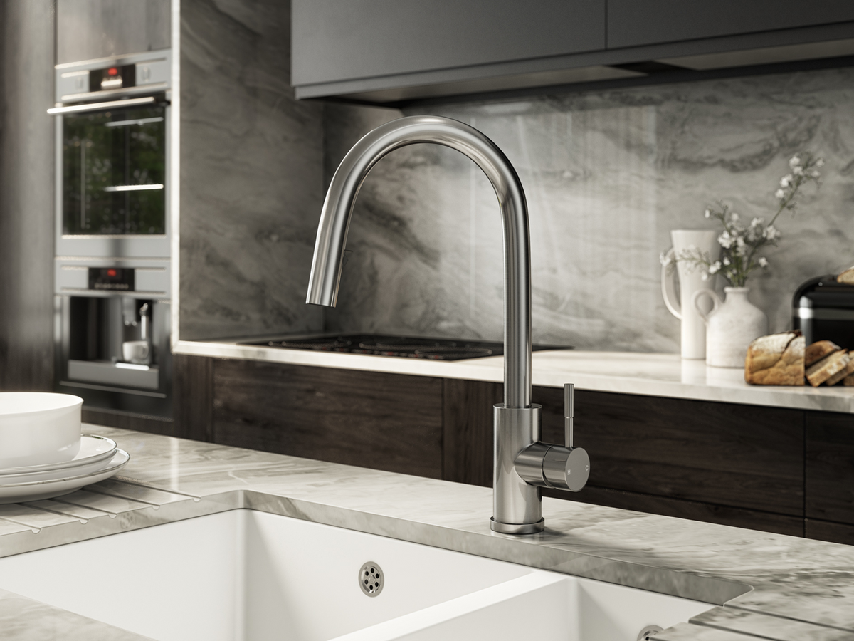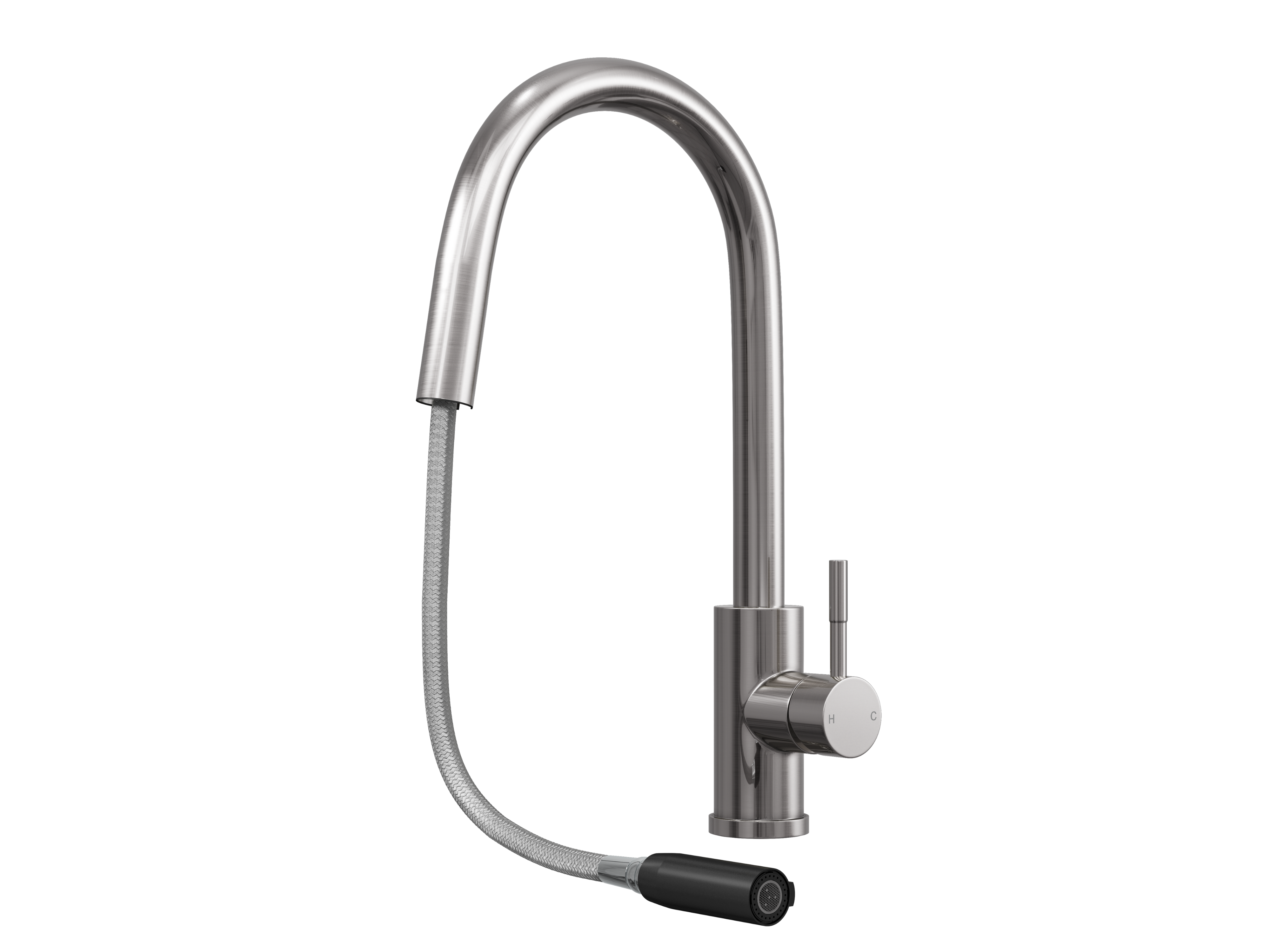 Kitchen Mixer Tap with Pull Out Hose and Spray Head - Brushed Steel