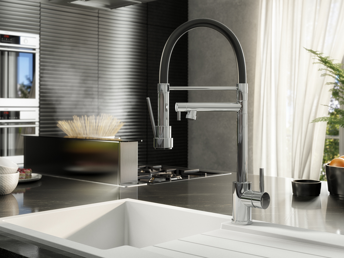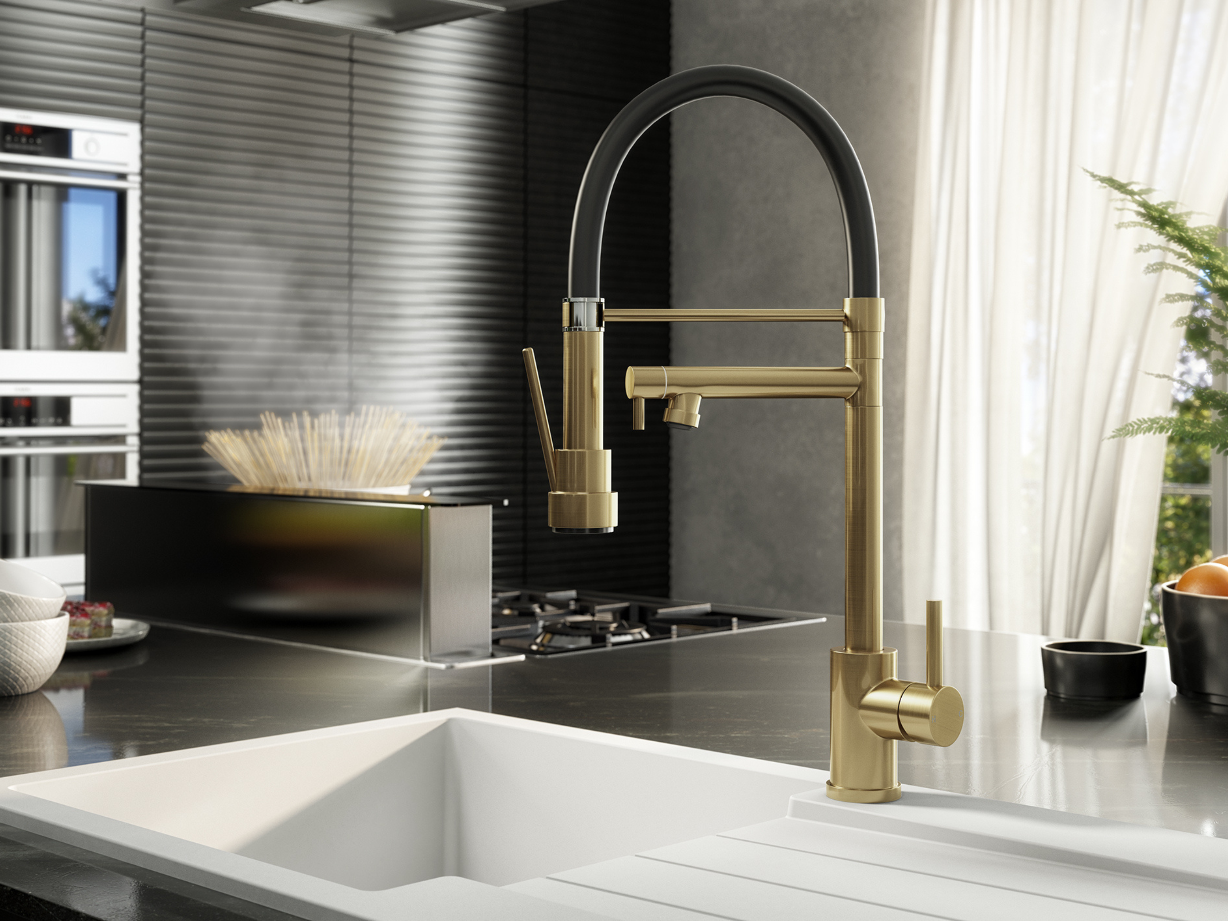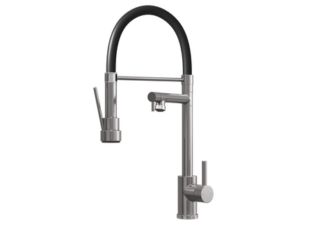 Kitchen Tap with Smooth Rubber Hose and Flexi Spray - Brushed Brass
