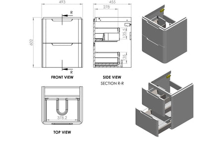 Excel Home Lambra 2 Drawer Basin Unit with Curved Ceramic Basin – Matt Gray