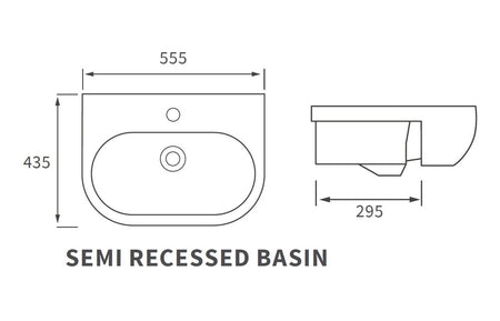 Lillyi 555x435mm 1TH Semi Recessed Basin