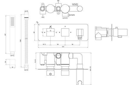 Lira Shower Pack One - Two Outlet Twin Shower Valve w/Handset & ABS Overhead - Chrome