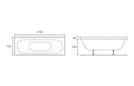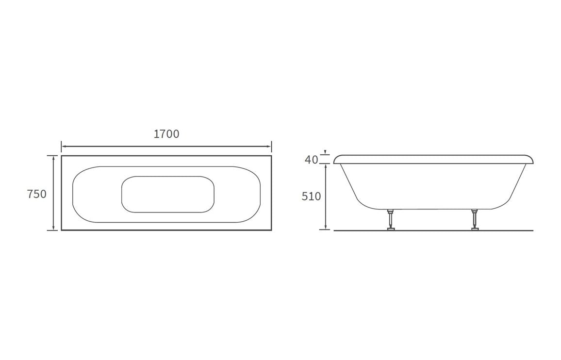 Malone Deluxe Square Double End 1700x750x550mm 0TH Bath w/Legs