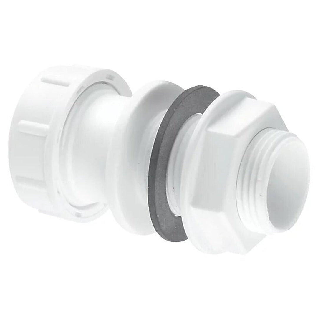 MCALPINE STRAIGHT OVERFLOW TANK CONNECTOR WHITE 22MM