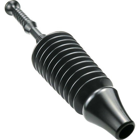 Quickly and easily remove blockages from toilets with this plunger that is designed to fit in U-bends. Powerful and ingenious bellows fill with water for maximum pressure moving up to 1 1/2 litres of water per plunge.