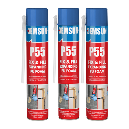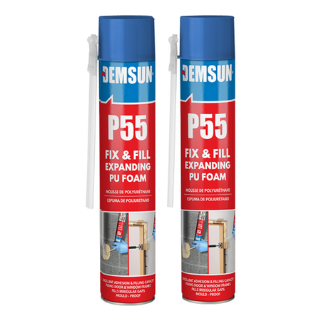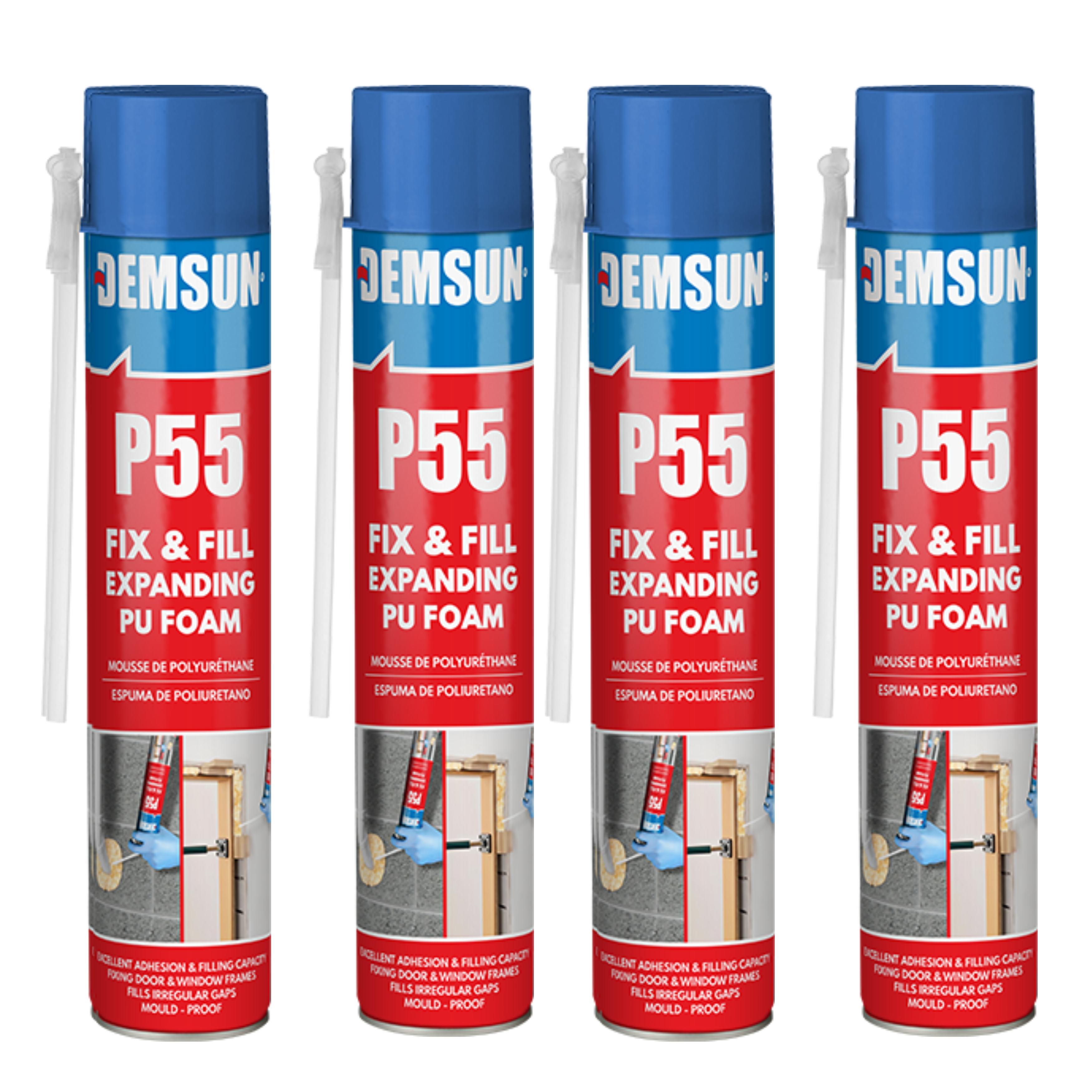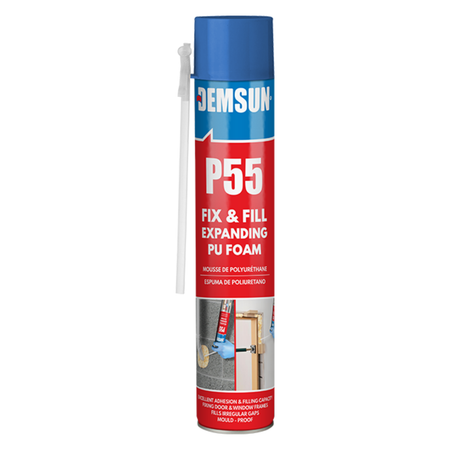 P55 is a single-component, moisture-curing and self-expanding aerosol polyurethane foam. It is designed for easy dispensing through the straw adapter included with each can. It does not contain any propellant gases that are harmful to the ozone layer.