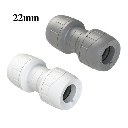 Perfect for hot and cold water systems, radiators, and underfloor heating, these couplings work in both hard and soft water areas. Made from durable polybutylene in a neutral grey, each fitting comes with pre-lubricated EPDM 'O' rings for easy assembly.