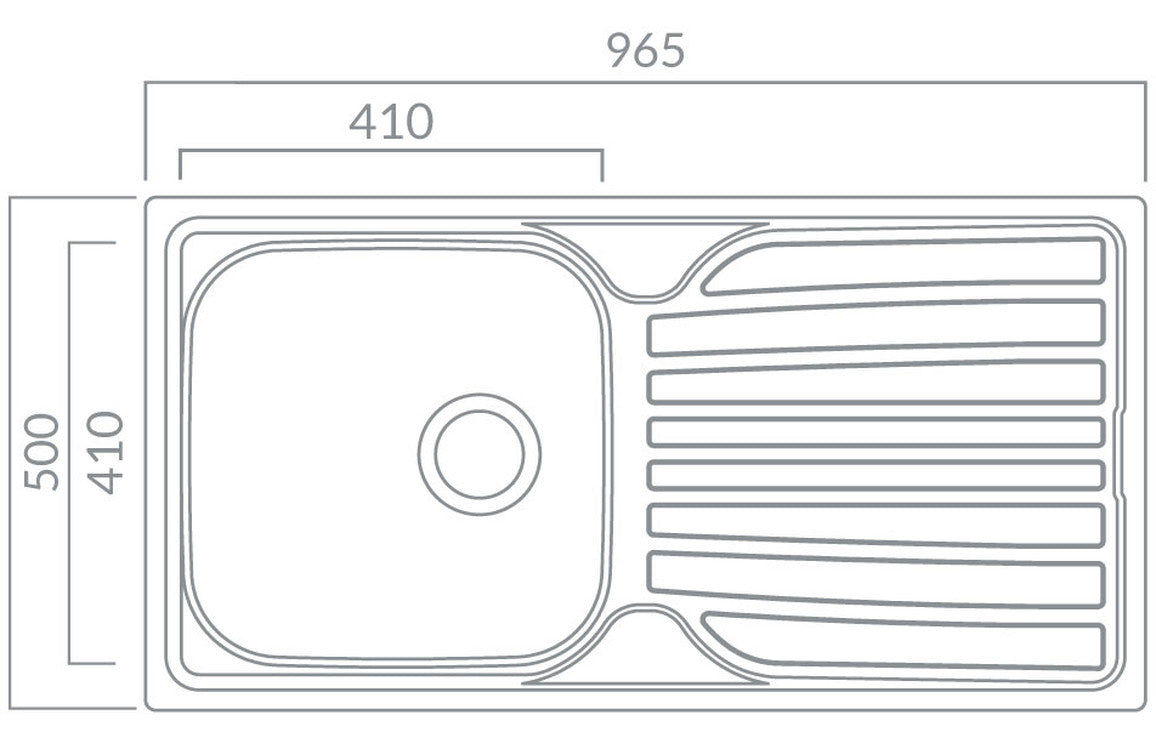 Prima 1B 965 x 500mm Stainless Steel Inset Kitchen Sink – Polished Finish, Reversible 1 Bowl with Drainer, Waste Kit Included