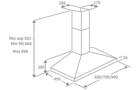 - Dimensions: H 583-898 x W 600 x D 450mm