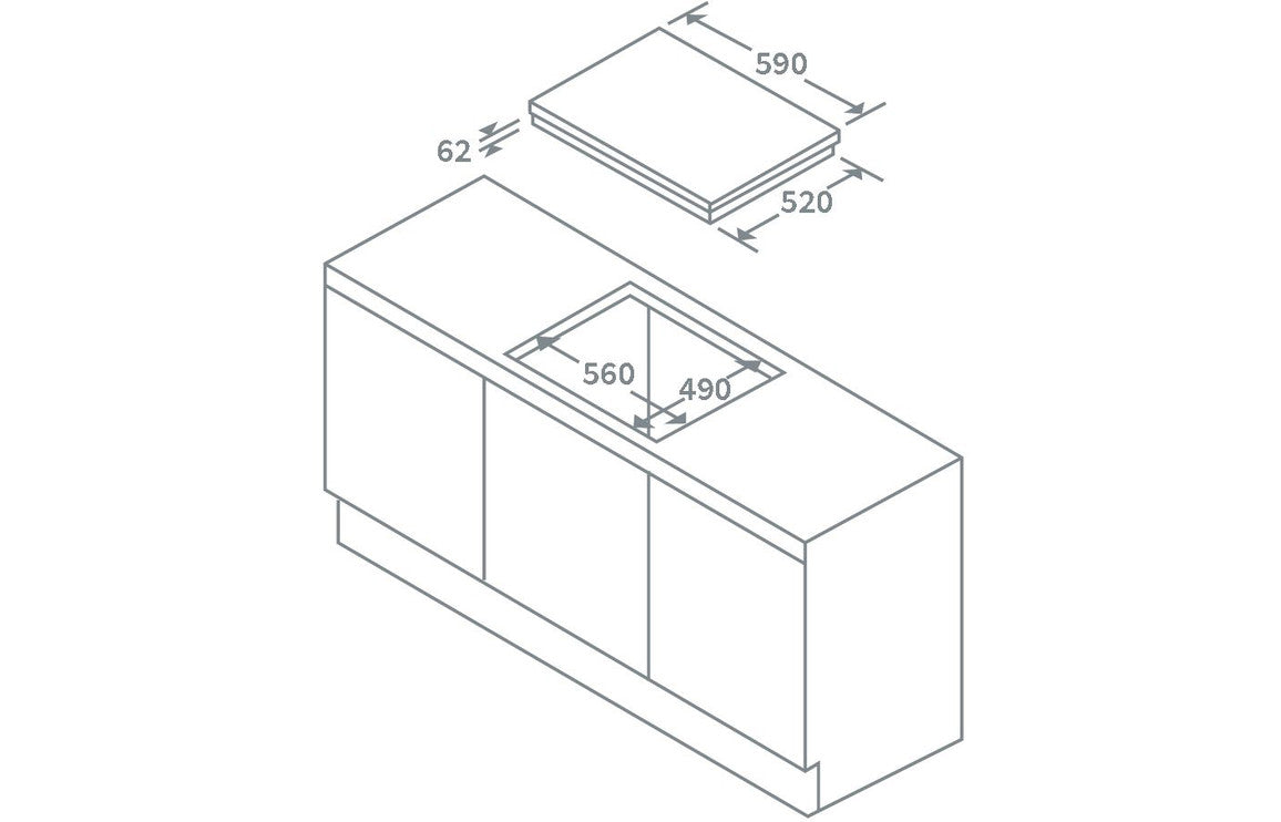 - Dimensions: H 62 x W 590 x D 520mm
