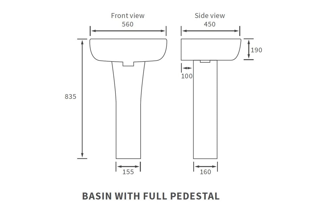 Sederwood 560x450mm 1TH Basin & Full Pedestal