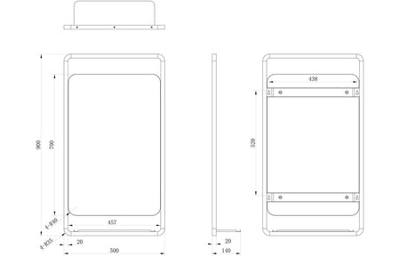 - Dimensions: H 900 x W 500 x D 140mm