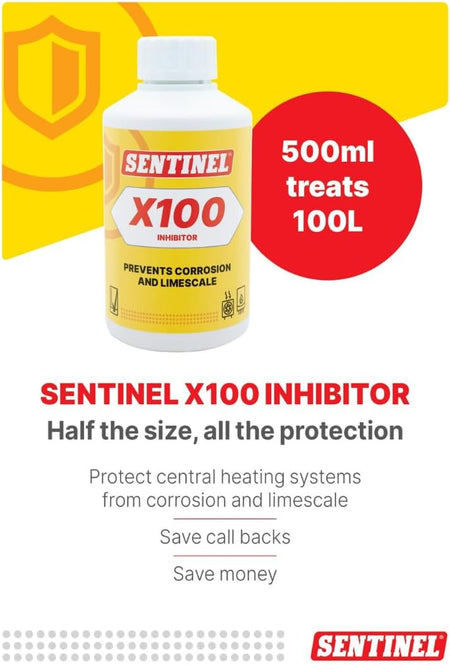Sentinel X100 Inhibitor 500ml Prevents Limescale and Corrosion Super Concentrate Inhibitor for Central Heating Systems