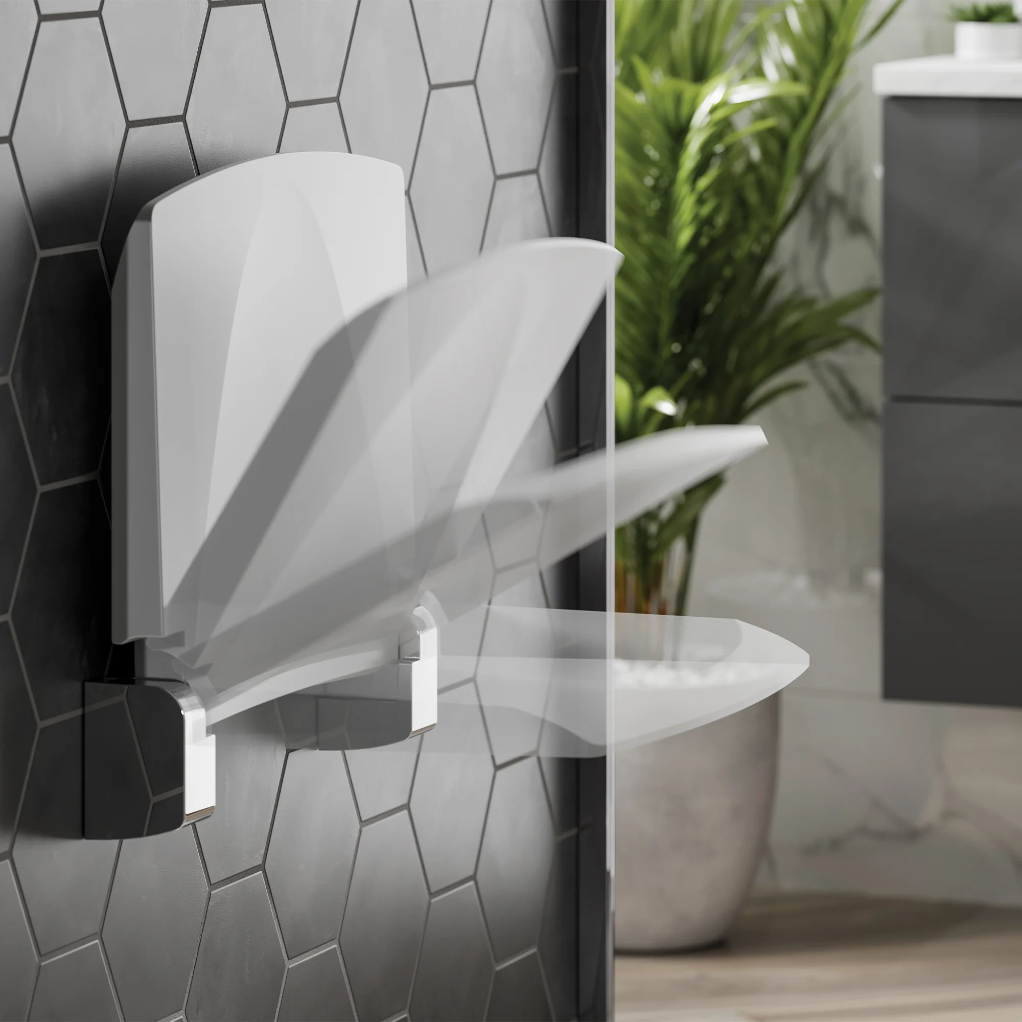 This compact and discreet shower seat is a sleek and contemporary solution that offers improved convenience and accessibility without intruding on the space. With strong fixings to hold up to 18 stone (120kg), this shower seat is designed to improve comfort and mobility when washing.