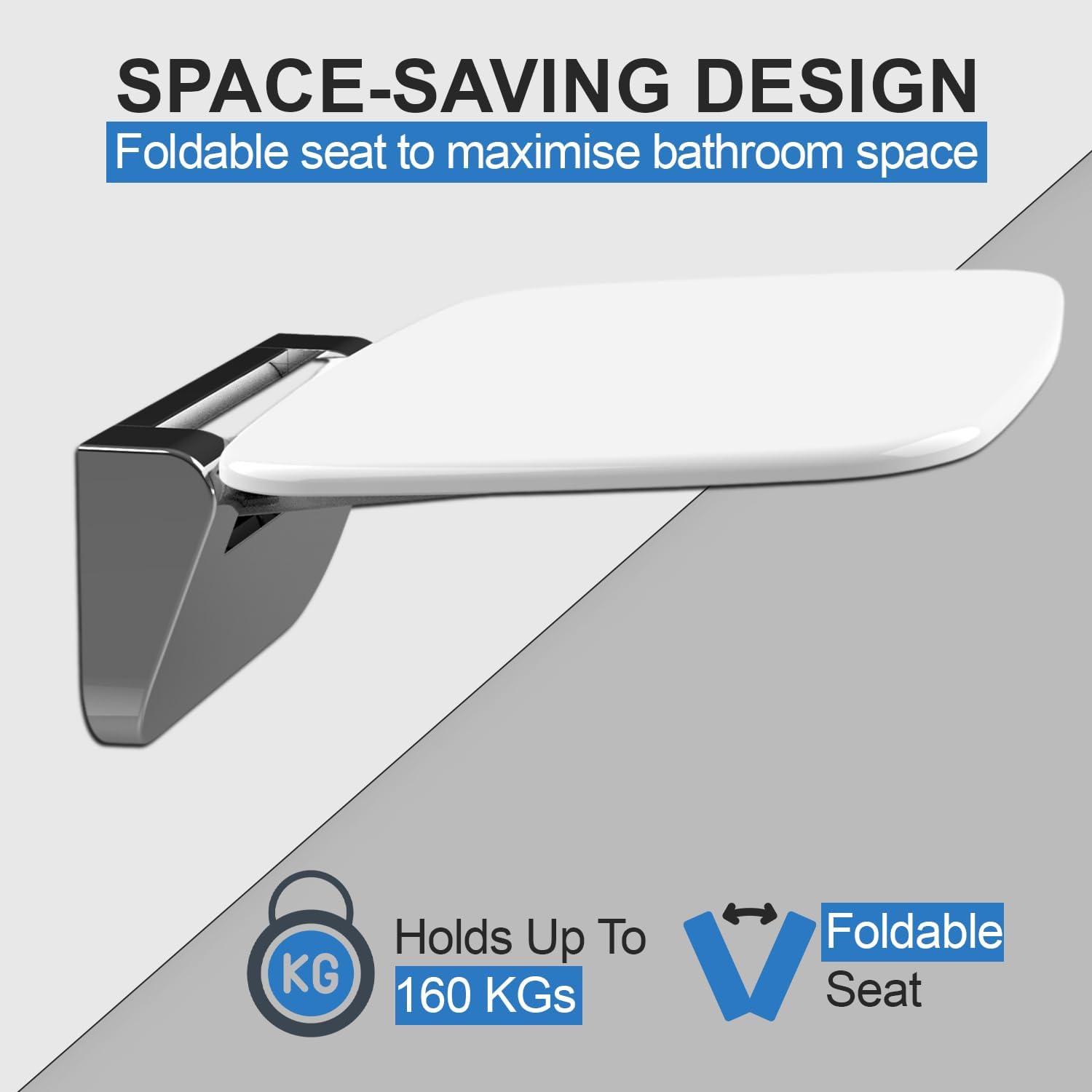- Heavy-Duty Wall-Mounted Shower Seat: Built for strength, this folding shower seat supports up to 160kg, ensuring safety and stability for users of all sizes. Perfect for bathrooms of all types.