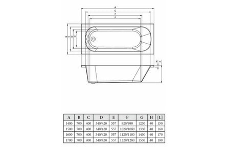 - Dimensions: L 1700 x W 700 x H 400mm