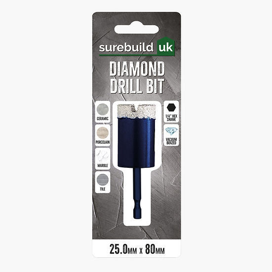 Expertly crafted with vacuum brazing technology, the Surebuild Diamond Drill Bit is specifically designed for drilling through hard surfaces such as ceramics, marble, and granite. Its unparalleled strength and precision ensure effortless and precise cuts, making it a must-have tool for any professional or DIY enthusiast.
