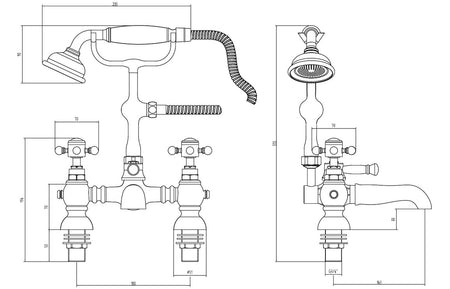 - Low Pressure Deck Mounted Brushed Brass Bath Shower Mixer