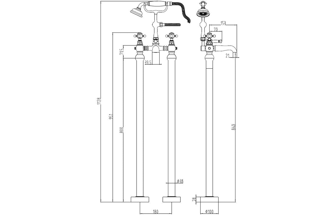 - Low Pressure Floor Standing Brushed Brass Bath Shower Mixer