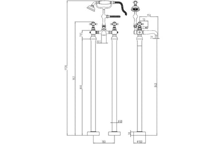 Tedlow Floor Standing Bath/Shower Mixer & Shower Kit - Brushed Brass