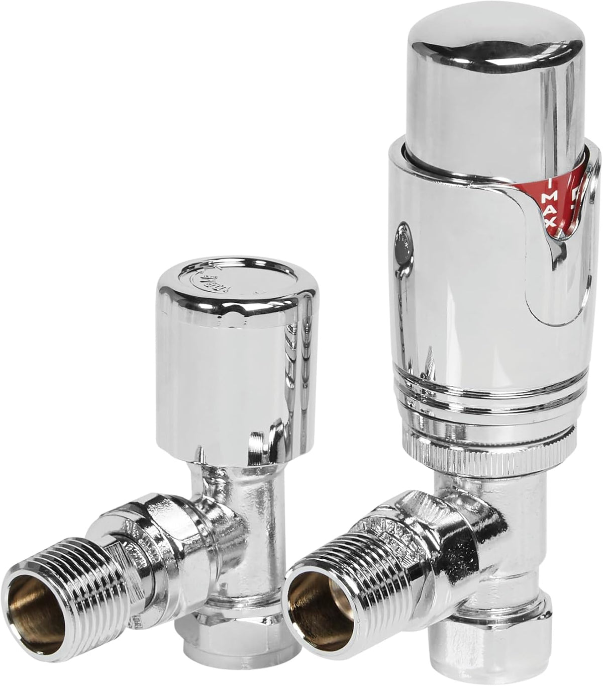 Thermostatic Radiator Valves and Angled Lockshield Valve Chrome - 1/2" x 15mm Angled Radiator Valves Chrome