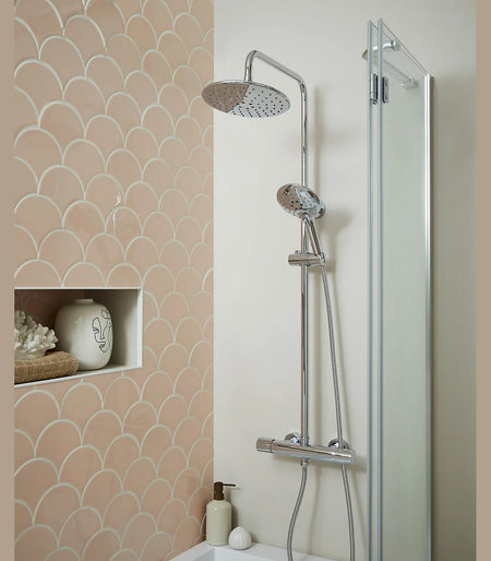 Upgrade your bathroom with this Thermostatic Round Shower Valve Set featuring a telescopic riser rail and integrated diverter. Designed for comfort, safety, and style, this complete shower kit includes: ✅ Chrome thermostatic valve with 2 outlets ✅ Telescopic riser: adjustable 820–1270mm ✅ 200mm overhead slim shower head ✅ 55mm hand shower with hose ✅ Adjustable wall brackets: 61–85mm ✅ Temperature pre-set at 38°C (override available) ✅ 5-Year Guarantee Included Thermostatic Control for Safety & Comfort: Maintains a steady temperature even with pressure fluctuations, preventing sudden bursts of hot or cold water. Ideal for families and everyday use. Customizable Fit: The telescopic rail and adjustable brackets offer flexible installation in various bathroom layouts – no major alterations needed. Modern Finish & Reliable Performance: The chrome finish complements any contemporary bathroom, while the anti-limescale nozzles ensure easy cleaning and strong, consistent water flow.